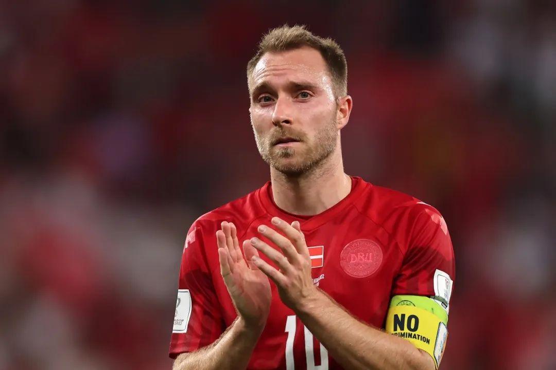 11月22日,丹麦队球员埃里克森(前右)在比赛中。新华社摄