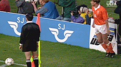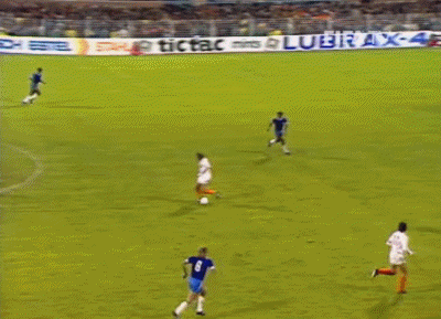 决赛再战首战0-1输给过的苏联,第32分钟,荷兰队由古利特接力头球破门首开记录!