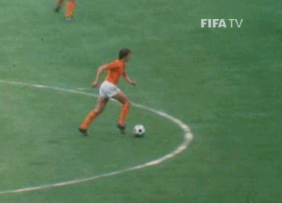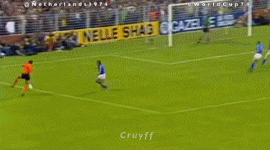 在与巴西队的比赛中,克鲁伊夫送出助攻,还攻入了一粒美妙的滑翔垫射,从此得名“荷兰飞人”。在这届世界杯与瑞典的比赛,他还完成了一次“克鲁伊夫转身”的名场面,流传至今。