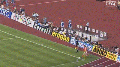 2000年欧洲杯,荷兰与比利时联合主办。这支荷兰队由里杰卡尔德带队,队内不和谐的声音小了一些。荷兰队连续战胜捷克、丹麦、法国,出线后6-1大胜南斯拉夫!克鲁伊维特戴帽,奥维马斯梅开二度,此时,荷兰队已经是夺冠的最大热门!进攻,进攻,还是TMD进攻!当荷兰队刮起橙色旋风,南斯拉夫队被冲得七零八落,克鲁伊维特也成为欧洲杯史上唯一一位在淘汰赛90分钟内戴帽的球员。