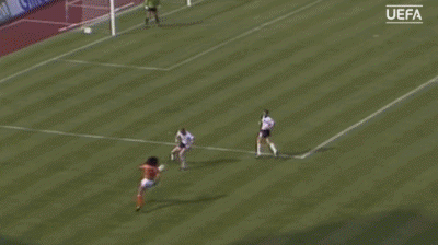 半决赛对阵宿敌联邦德国,马特乌斯点球破门,科曼则点球扳平。第88分钟,范巴斯滕禁区内面对沃特斯的直塞不停球,顺势铲射完成绝杀,荷兰队2-1取胜晋级决赛!