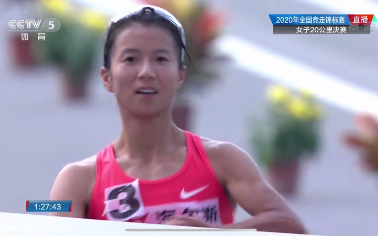 新京报讯(记者 徐邦印)9月20日下午,2020年全国竞走锦标赛继续在山东泰安进行,在备受瞩目的女子20公里竞走决赛中,奥运冠军刘虹以1小时27分46秒夺冠,杨家玉、切阳什姐分别获得亚军和季军。