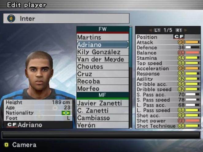在2005年登陆PS、PC和Xbox的《实况足球5》中,23岁的左脚将阿德里亚诺,曾是这样数据狂魔一般的存在。而在最新一代的《实况足球2019》中,他也将与坎比亚索、雷科巴和德约卡夫一起,作为国际米兰的传奇球星重装上阵。