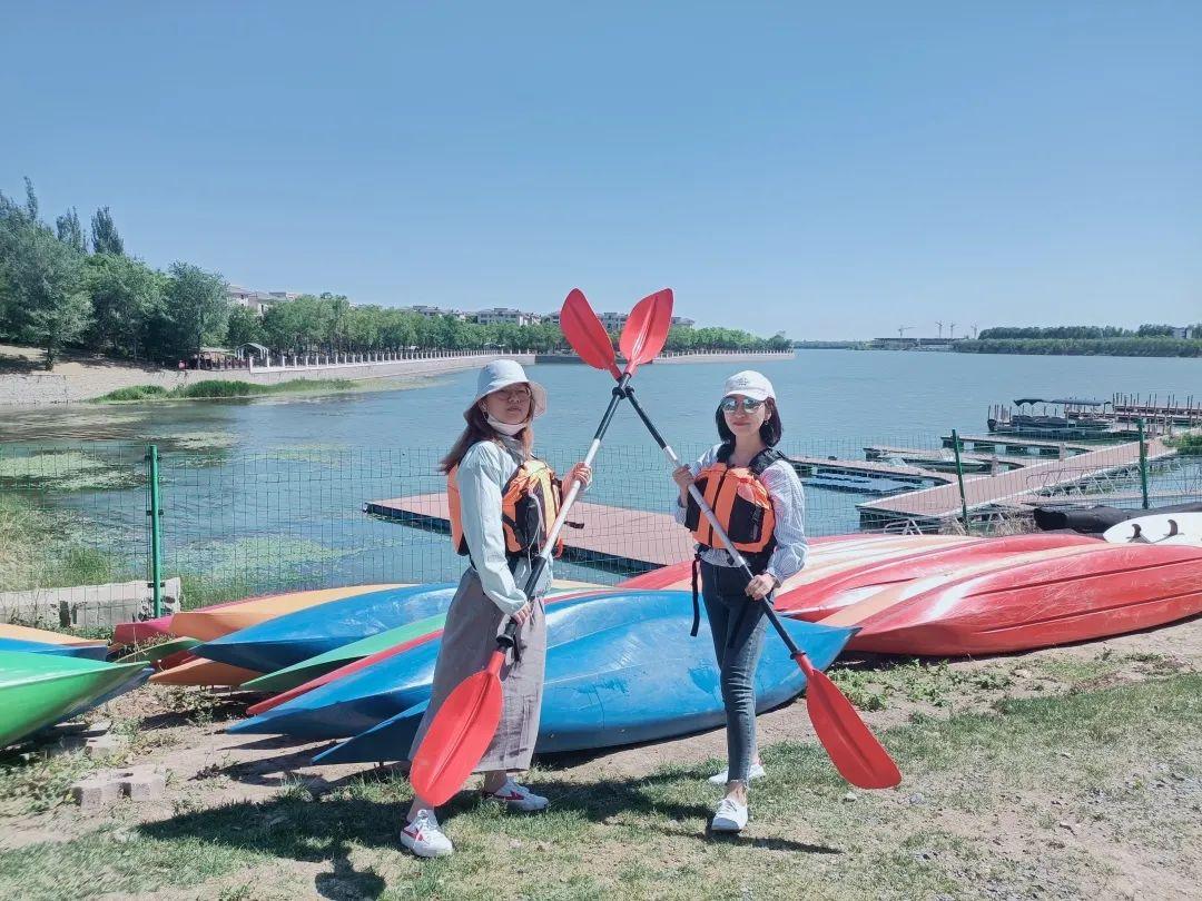 活动之余,记者体验了一把水上皮划艇的快感。在教练细致的讲解与简单的练习后,我们坐上了五颜六色的皮划艇。时至初夏,天公作美,风和阳光一样热情,我们乘着皮划艇,劈波斩浪,摇摇晃晃划进了滟滟水波中。挥桨振臂,驰骋水面,宁静的湖水被我们翻出一道又一道浪花,摇出一池碎金,令人忍不住伸手拨弄。水激荡着肌肤,溅起千点珠滴,洗去炙热暑意。行至湖心小岛,柳条拂堤,撑起一片荫凉。只有在这里,我才能直视山色天光,看远山连绵,碧空白云,缭绕变幻,生命湖酒店架起的绿道更是点翠了这个夏日。据水上运动俱乐部的教练介绍,皮划艇是一项集优雅与动感于一身的水上运动,是考验速度与耐力的项目,经常参加皮划艇运动可促进人体心血管功能的调节,加大肺活量,增强全身肌肉力量和耐力,是健身锻炼的好项目。同时,水面上的负离子含量是室内的2至3倍,对呼吸系统也是有极大的益处。