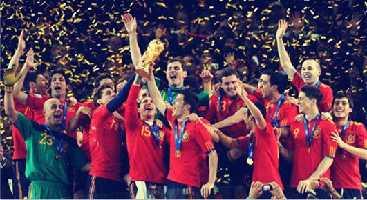 而且在本届世界杯上,人们还见证了新王加冕,西班牙队在多年的磨砺之后终于赢得大力神杯,这也是他们连续两届赢得大赛冠军(两年前,西班牙赢得08年欧洲杯冠军),自此开启一个西班牙足球时代。