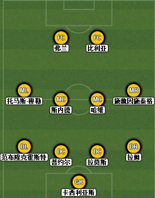 中场:施魏因施泰格(德国)、哈维(西班牙)、斯内德(荷兰)、托马斯-穆勒(德国)