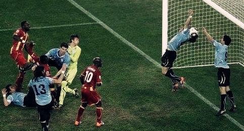 相信很多人认识苏亚雷斯都是从2010的南非开始,被人所熟知的理由当然是那次著名的手球。加时赛最后一刻,加纳队在乌拉圭的禁区制造混乱,守门员穆斯莱拉出击失误,留下一个大空门,加纳队第一下阿皮亚的射门被苏亚雷斯门线上用腿挡出之后,第二下阿迪亚补射,正当皮球要越过门线时,又是苏亚雷斯将球挡出,不过这次他直接用手充当穆斯莱拉的角色。主裁判立即给予其红牌并判罚点球,但吉安却将球踢到横梁上。