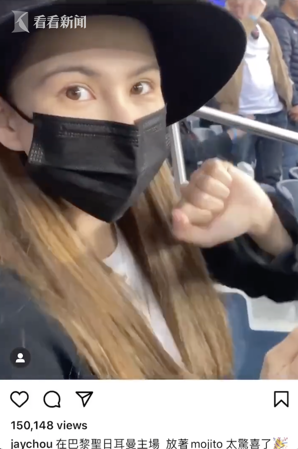 周杰伦的牌面够大,赛前巴黎在进行热身时,王子公园球场甚至播放了《Mojito》一歌。
