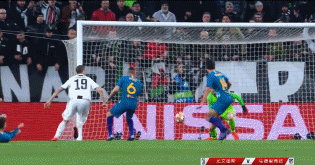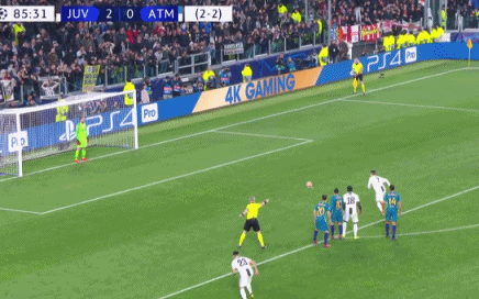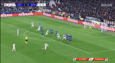 第85分钟,贝尔纳代斯基在禁内被科雷亚推倒,尤文得到点球机会。第86分钟, C罗主罚点球,皮球打左侧球门得分,尤文3-0马竞,总比分3-2反超!