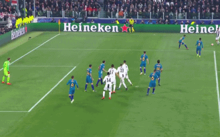 图3:詹前提之后的分边,尤文传中战术找到C罗,后者力压对手头球得分