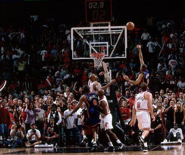 对NBA老球迷来说,当今联盟重视进攻限制防守的风格让他们很怀念当年以防守为基调的低比分“铁血时期”。20年前,八九十分是全场比赛的比分,而放到今天只是三节得分,差距一目了然。肌肉的碰撞和对抗的硬气比如今动辄20记3分球的轻描淡写,犹如原始的篝火烤肉和精致的国宴,哪个更热血和豪迈无需多言。在世纪之交的NBA季后赛,热火和尼克斯犹如一对形影不离的夫妻,从1997年开始连续四年“不见不散”,而且每一次都谱写惊天动地的铁血风采:1997年东部半决赛,两队发生打架事件,结果尼克斯因多名主力被禁赛,葬送3比1领先好局;1999年,尼克斯依靠阿兰·休斯顿的压哨绝杀,3比2淘汰热火上演黑八传奇。2000年东部半决赛则是两位老冤家的最后一次交手,这一次,双方上演了史上最窒息的七场防守盛宴——七场比赛,两场分差在1分,1场2分,一场4分,还有两场6分和一场8分。 所有比赛的最后一分钟胜负都难以预料,而这也是两位铁汉中锋莫宁和尤因的最后一次握手。