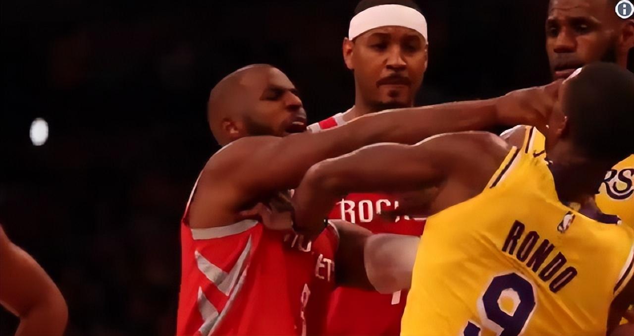 这是2018-19赛季湖人对阵火箭的一场常规赛比赛,因为对哈登的造犯规行为感到很不爽,所以英格拉姆在哈登快攻上篮成功后故意推了他一把,这一举动还好,双方都还比较克制,都在裁判和球员们的及时制止下而停息下来。英格拉姆随后被郎佐-鲍尔给拉到了后场等待处罚,可刚过那么几秒钟,英格拉姆直接回头快速冲到前场,然后对着人群中的克里斯-保罗给了一拳,与此同时,隆多和保罗也扭打在一起,两人上演了一场拳击大赛。