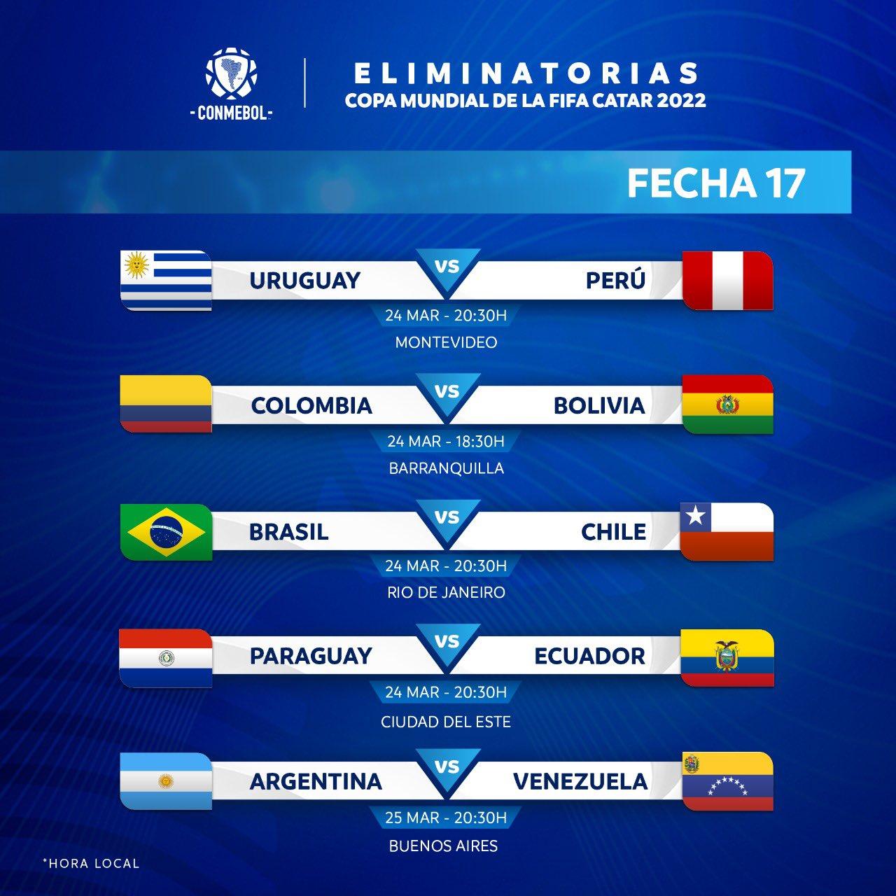直播吧3月8日讯 世预赛南美区17、18轮(最后两轮)比赛时间公布,目前排在第4、第5,积分只相差1分的乌拉圭、秘鲁将在第17轮直接碰面,这场比赛将在北京时间3月25日7时30分开球。