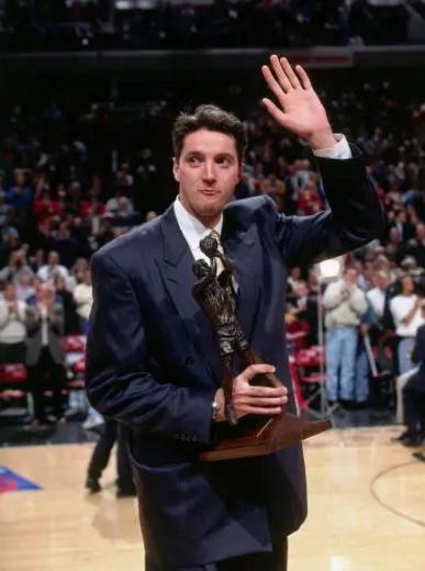 《最后一舞》中,科尔就公开表态:作为克劳斯钦定的角,库科奇一度受到乔丹皮蓬的排挤,鬼知道他如何搞好了关系。由于乔丹太过于耀眼,导致库科奇被严重低估。在我看来,库科奇的无私成就了伟大的公牛王朝,这一点至关重要。没什么人会同名利过不去,库科奇的大公无私也是一种不世出的伟大。在乔丹身边打球,库科奇上场时间和场上存在感自然要下降不少,更多的拉到外线。95-96年,库科奇为适应新角色,30%的三分命中率愣是提升到了40%,主要数据也略微下降。在他的调整下,公牛打出72胜的队史最佳战绩,库科奇荣膺最佳第六人,力助公牛拿下个人首枚戒指。