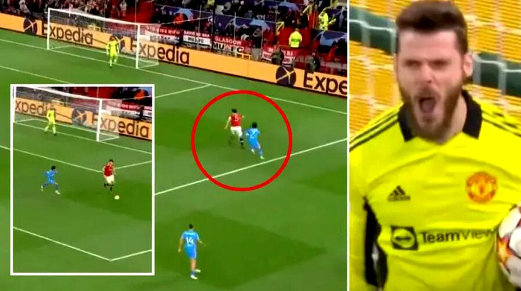 同样的情况发生在英超与阿斯顿维拉之战,马奎尔送出一记蹦蹦跳跳的横传直奔门前,原本在底线等待回传的德赫亚强行伸脚去够球,被对手抢断,好在他也神扑化解对方单刀。完成扑救后,德赫亚抱着球怒骂马奎尔:「我明明站在这里,你给我传到哪里去?」