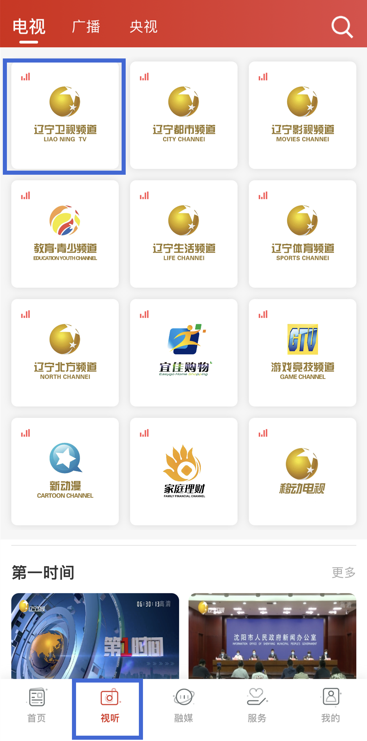 1、点击下方“试听”版块,页面上方“电视”专区点击“辽宁卫视频道”