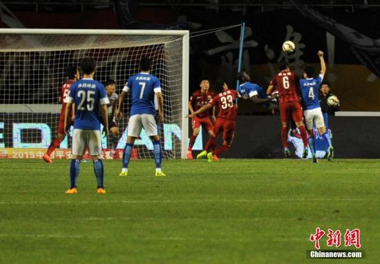 资料图:2015赛季上海上港(红)在比赛中。中新社发 翟羽佳 摄