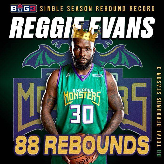 此外,这也是埃文斯连续三次拿下BIG3联赛的篮板王,他刷新了自己的记录。埃文斯效力于BIG3联赛的3 Headed Monsters(三头怪)队。