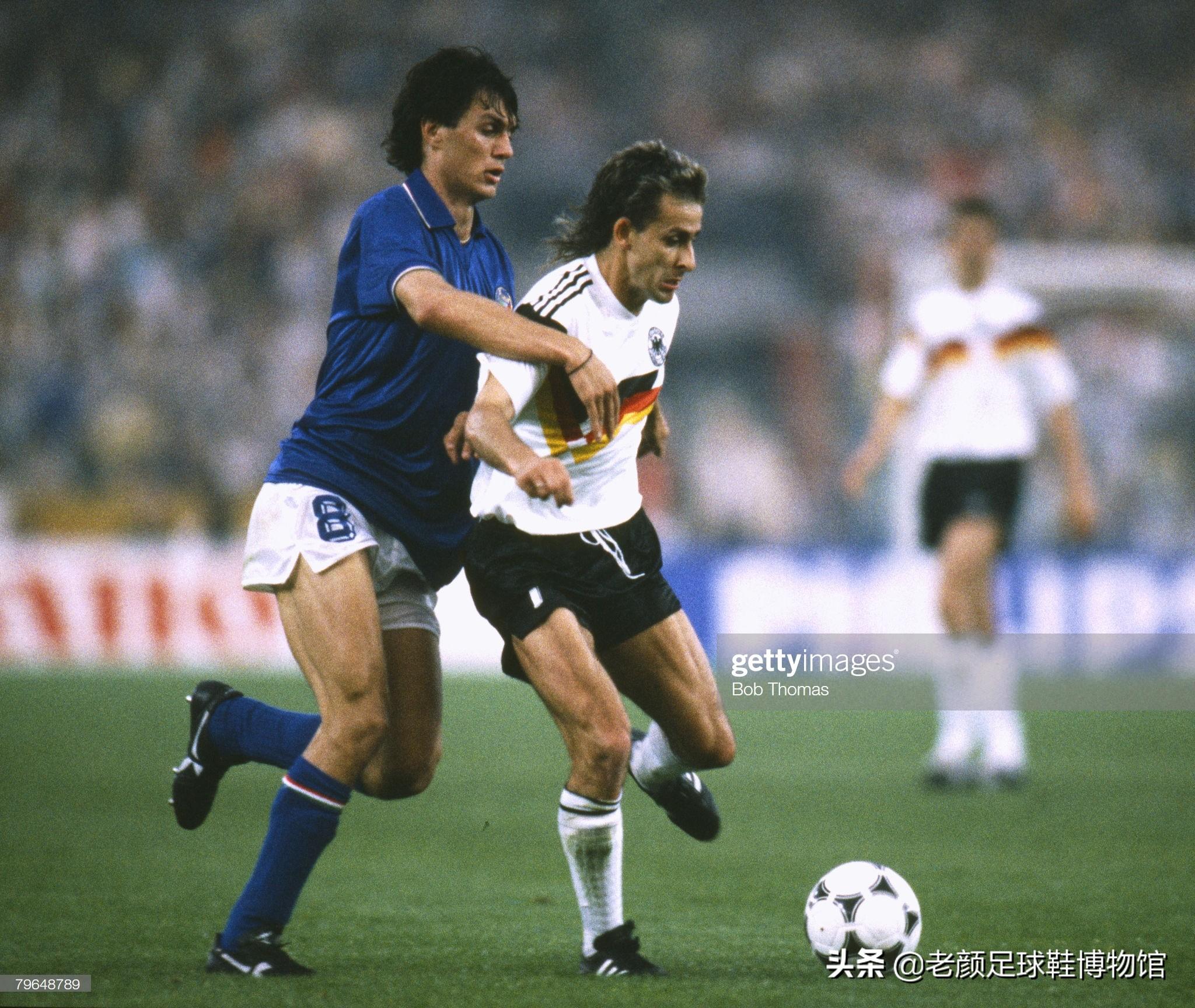 1990年世界杯,意大利队迎来了主场作战,马尔蒂尼也首次参加世界杯,他作为主力队员,参加了所有的七场比赛,意大利队最终取得了第三名的成绩。意大利队当年的后防线,国米的贝尔戈米和费里和米兰的巴雷西和马尔蒂尼组成,最硬的钢筋混凝土防守,半决赛之前,五场比赛一球不失,如果不是守门员曾加的失误,或许517分钟的不失球记录可以再被延长,最终意大利队倒在了阿根廷门将戈耶切亚的手套下。当时的意大利队,是由diadora品牌赞助,队中的巴乔,曾加等人也都是使用该品牌的足球鞋。这一届世界杯,马尔蒂尼的出场时间7场比赛加上加时赛就超过660分钟。