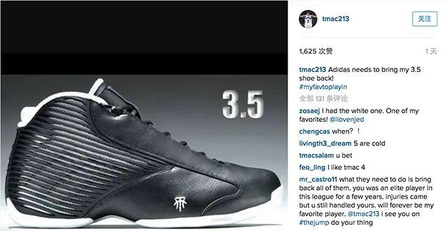 而近半年来,麦迪多次换上头号竞争对手的球鞋,预示着事态已经到了难以挽回的地步,似乎与阿迪彻底闹掰了。此前,麦迪也曾多次呼吁,adidas 应该将他「早期签名鞋」尽快复刻,尤其是他个人最爱的 T-Mac 3.5。