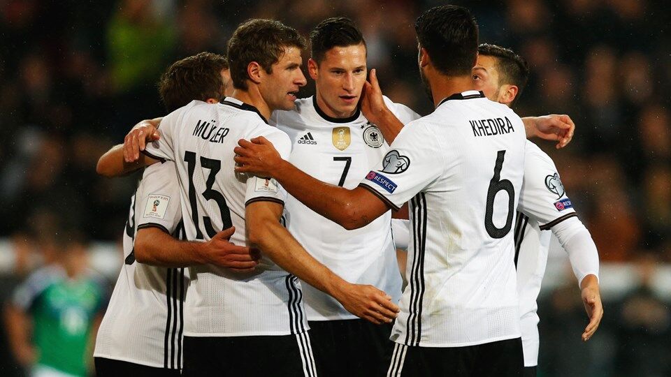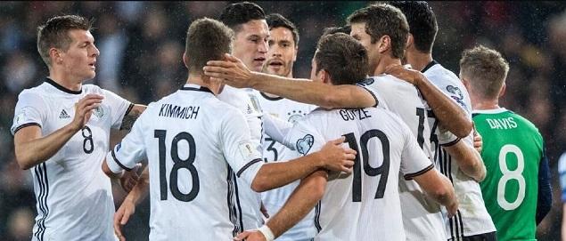 在上一轮4-0大胜白俄罗斯后,德国提前出线,积分也超越荷兰,如果本场战胜北爱尔兰,德国将取得小组头名。北爱尔兰上轮战平荷兰后,已经无缘出线,只能参加明年的附加赛。德国队过去八次面对北爱尔兰都取得胜利,本场瓦尔德施密特因伤缺席,詹解禁复出,德国也会进行首发轮换。