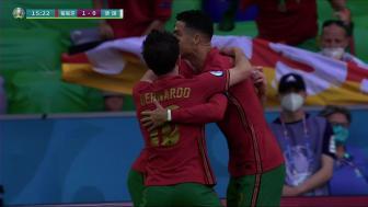 第14分钟,德国队久攻不下,葡萄牙发起反击,贝尔纳多-席尔瓦沿右路长驱直入,然后将球分给另一侧的若塔,若塔得球后横传给C罗,葡萄牙队长攻门得手,葡萄牙1-0德国。↓