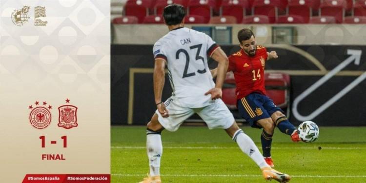 直播吧9月4日讯 北京时间9月4日凌晨2:45,欧洲国家联赛A级第4组首轮,德国与西班牙迎来直接对决。上半时比赛罗德里戈错失空门良机,德赫亚多次做出关键扑救力保西班牙球门不失。下半时比赛戈森斯助攻维尔纳进球打破僵局,加亚补时最后时刻扳平比分。最终,德国首战1-1战平西班牙。