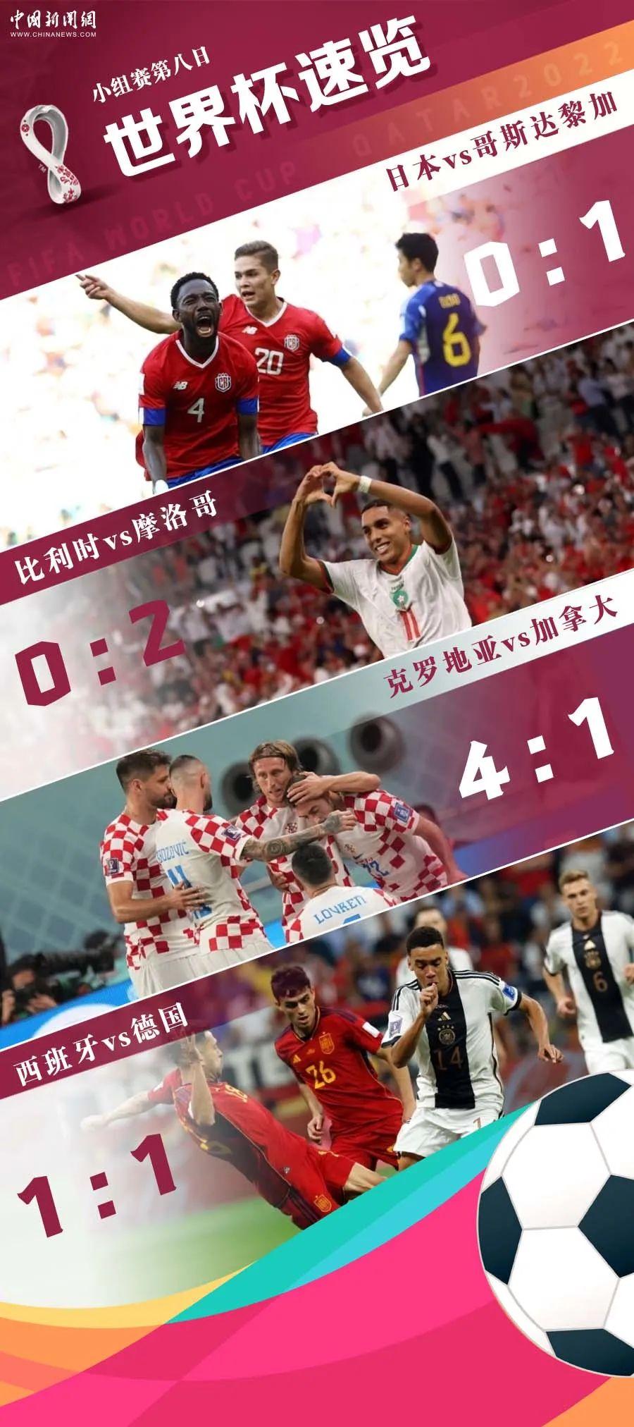 西班牙首轮7-0大胜哥斯达黎加取得开门红,而德国队则是1-2爆冷被日本队逆转。不过第2轮同组的另外一场比赛中,日本队0-1不敌哥斯达黎加,这让该组的出线形势变得微妙起来。