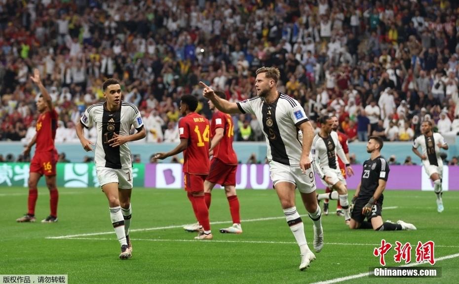 补时第4分钟,西班牙扳平场上比分!费兰-托雷斯右路下底传中,加亚在队友头球攻门线路上伸出一脚将球送入球网,西班牙1-1德国。↓