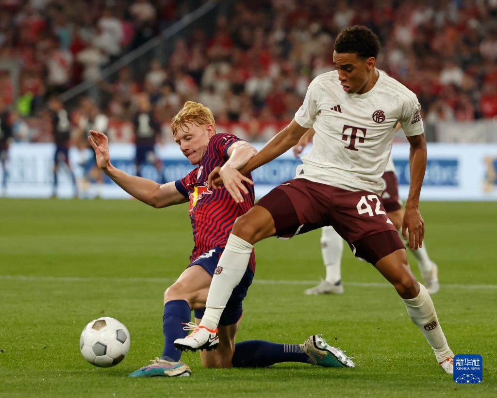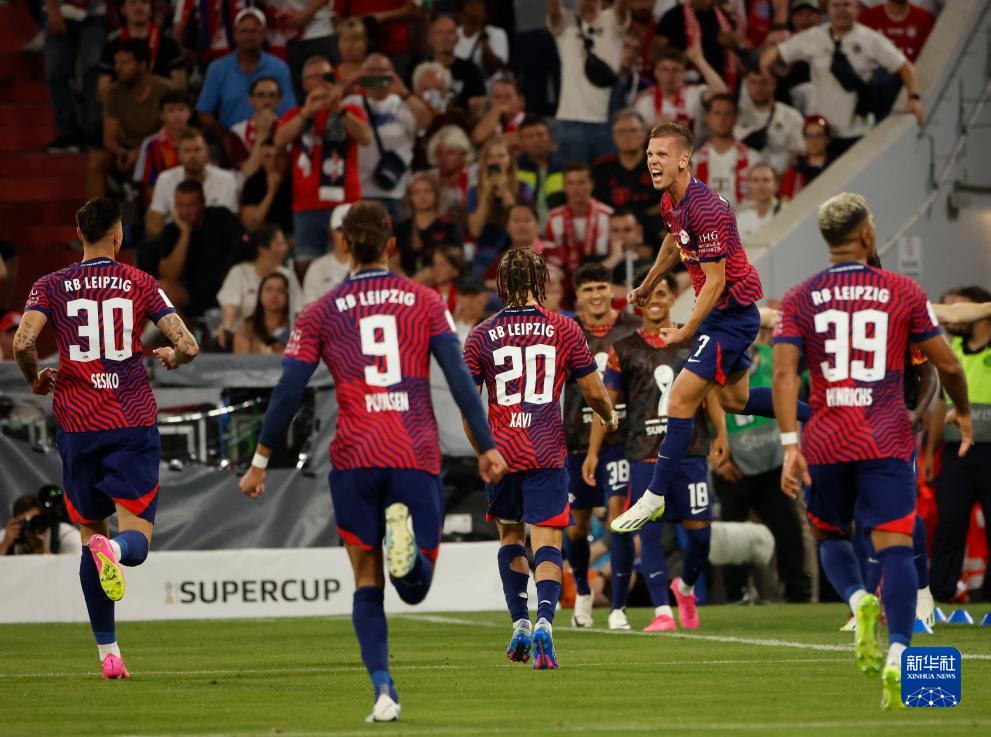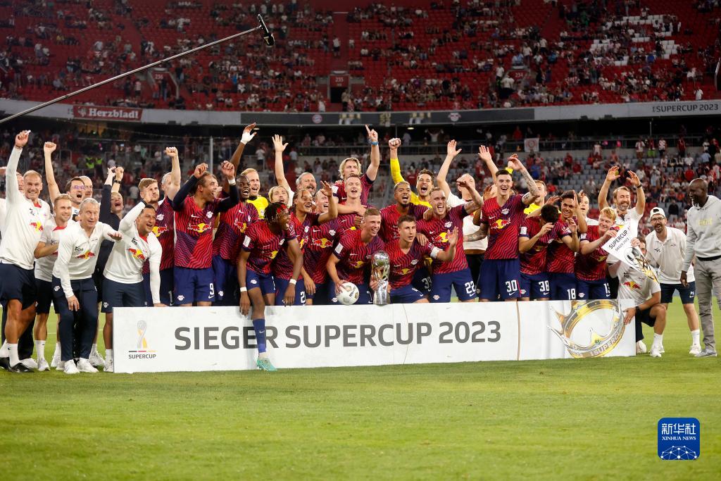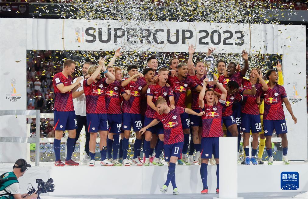 当日,在德国慕尼黑举行的2023年德国超级杯决赛中,莱比锡队客场以3比0战胜拜仁慕尼黑队,夺得冠军。
