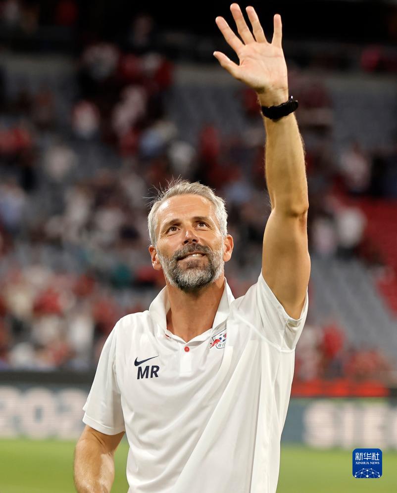 8月12日,莱比锡队主教练罗泽在比赛后向观众致意。