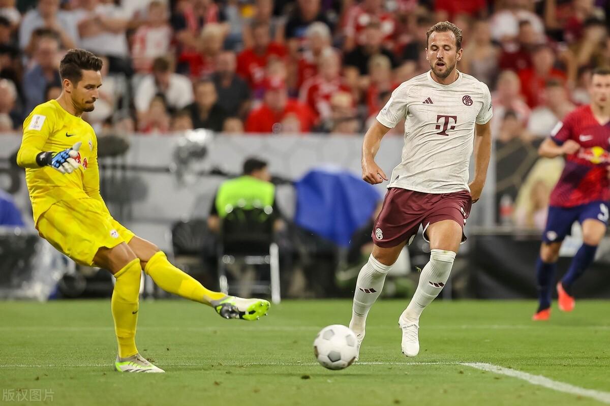 拜仁获得了上赛季的德甲冠军,莱比锡获得了上赛季的德国杯冠军,两队进行超级杯比赛。拜仁新援凯恩和金玟哉坐在替补席上,莱默尔首发出场。