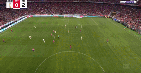 第44分钟,维尔纳在前场左侧送出直塞,禁区内的奥尔莫马赛回传领球过人,随后一脚捅射将球打进,莱比锡2-0领先拜仁。 上半场结束,拜仁暂时落后。