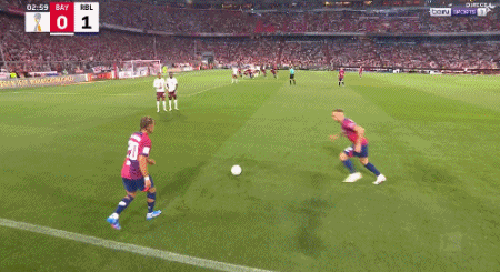 第3分钟,莱比锡前场左边路位置的任意球开到禁区,拜仁后卫解围不远,奥尔莫推射远角破门,莱比锡1-0领先拜仁。