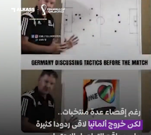 AlKass体育频道的这则视频中,也截取了不少球迷嘲讽德国队应该更专注于比赛,而非政见宣言的推文。
