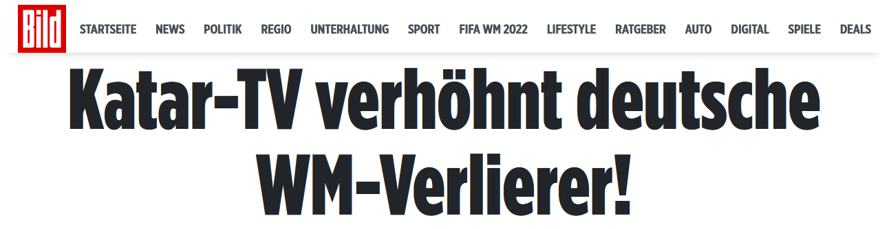 美媒CNN、《纽约邮报》,英媒《镜报》、《快报》等多家外媒都认为,此举是卡塔尔电视台在“嘲讽”早早出局回老家的德国队。德媒《图片报》更是直接破防,指责卡塔尔电视台不应该嘲笑输家。