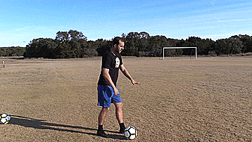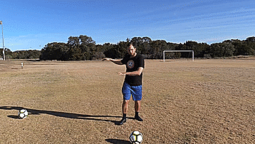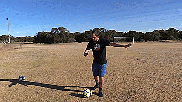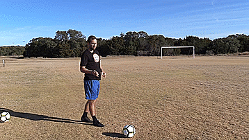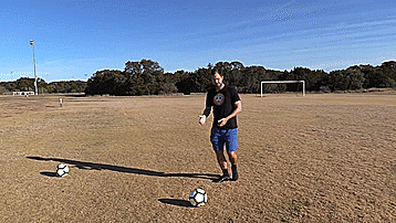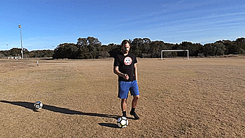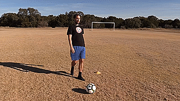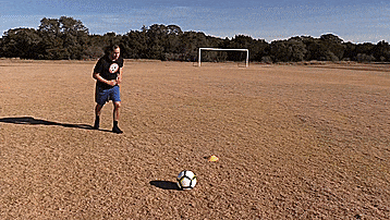 踢高球和普通传球一样没什么特别的,都是技巧而已,所以踢球前准备完全一样,球离开脚一点,留出足够的踢球空间,支撑脚这次略有调整,比普通传球要离球更远一些,击球这次我们踢球的底部,用我们脚鞋带位置击打球的底部。