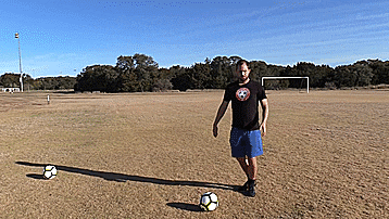 首先我们看看最基本的传球,当我们在传球的时候要注意三件事,首先不论什么时候,传球时球和脚要有一定距离,这样可以留出助跑或上步的距离,这样踢出的球更有力量。