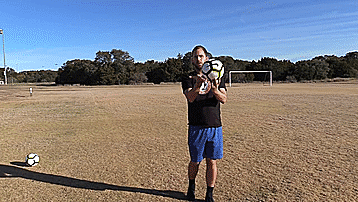 5.各部位连续颠球:根据上述单一颠球技术动作要领,用各部位配合连续颠球,配合的部位越多,难度越大。颠球的部位有脚背、脚内侧、脚外侧、大腿、头部、胸部、肩等。