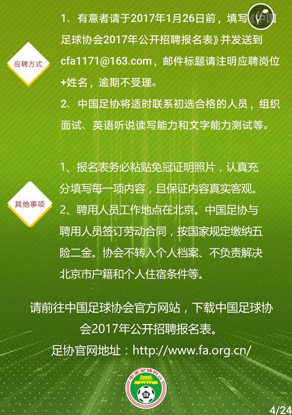 根据足协官方说法,聘用人员工作地点在北京,但协会并不负责解决北京户籍和个人住宿,也不会转入个人档案。