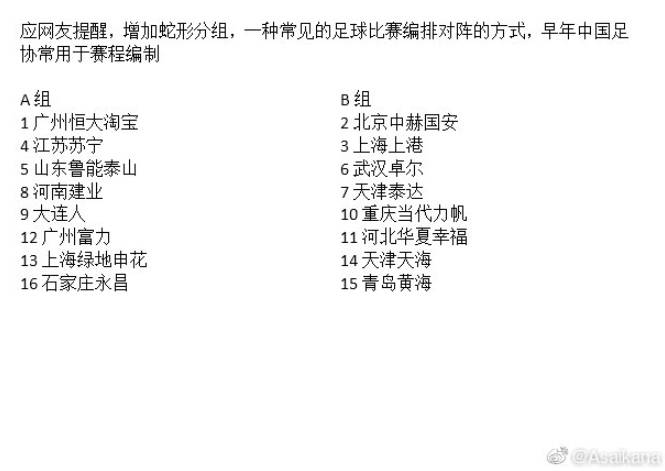 如果中超按去年成绩分成两组,一般是单双数分布,那就变成了这样:(天海获得中超准入情况下)