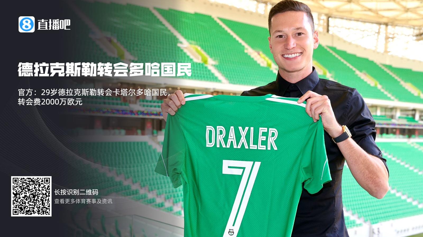 直播吧9月14日讯 据德天空记者Florian Plettenberg报道,德拉克斯勒决定加盟卡塔尔球队多哈国民,转会费超2000万欧。