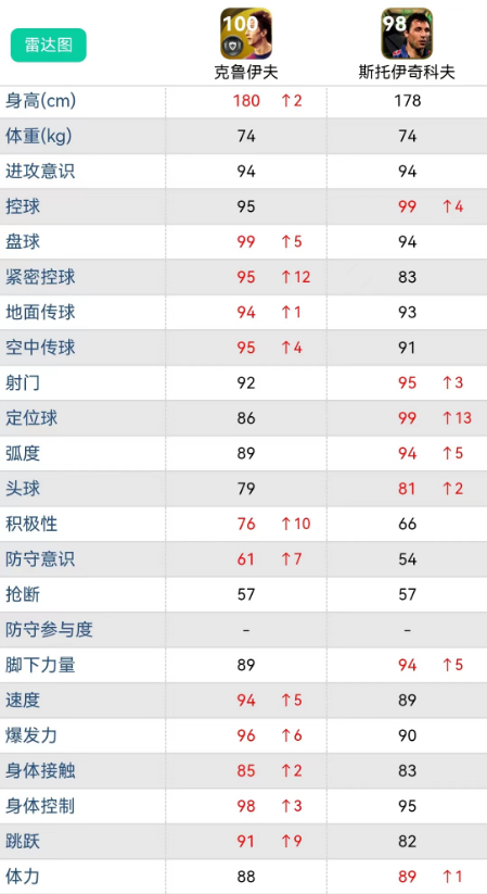 身体方面:他的身高和体重和劳尔一样,但身体平衡能力更好,控制手感也比劳尔丝滑,斯托伊奇科夫身体方面还是占优势的。