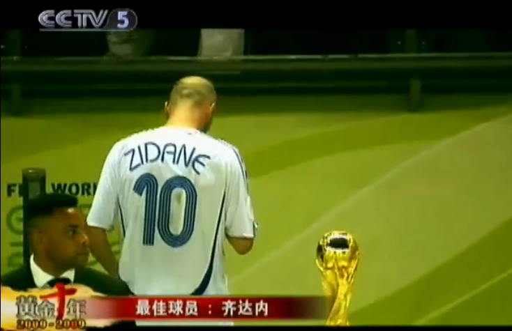 齐达内被评选为21世纪第一个十年的最佳球员,他帮助法国队夺得2000年欧洲杯冠军,帮助皇马赢得01/02赛季欧冠冠军,2006年世界杯,齐达内再次奉献大世纪表演,帮助法国淘汰西班牙、巴西、葡萄牙后闯入决赛,可惜在与意大利的决赛中,罚进点球的齐达内在加时赛中头顶马特拉齐,最终吃到一张红牌,就此结束球员生涯!