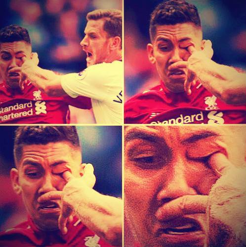 热刺1-2输给利物浦的比赛中,热刺后卫维尔通亨的手指捅到了菲尔米诺的眼睛。这位巴西前锋在被比利时后卫捅了眼睛之后,经队医治疗后仍无法坚持,随即被替换下场。