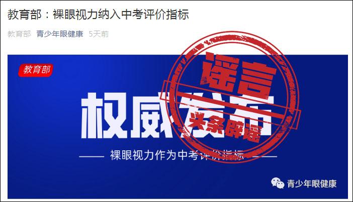 无独有偶,今年7月份网络上流传的一篇题为“教育部:裸眼视力纳入中考评价指标”的文章刷屏大家的朋友圈,事关升学,引发了众多家长的焦虑。这一话题在微博上也引起了广泛的讨论。