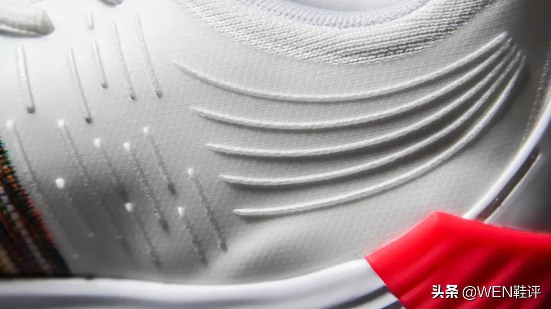 鞋身上这道无比吸睛的彩虹就是FUZIONFIT+自适应压缩绑带,其图案灵感来自于光线折射后的多彩光谱。