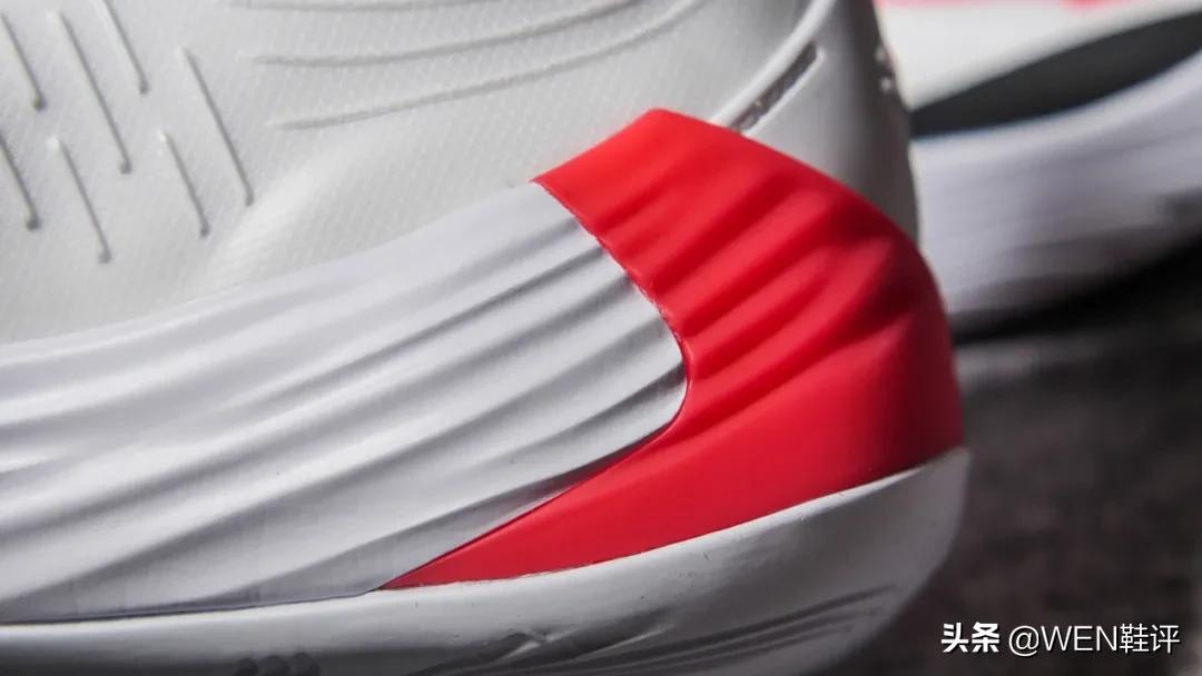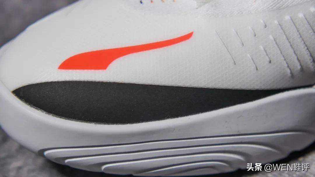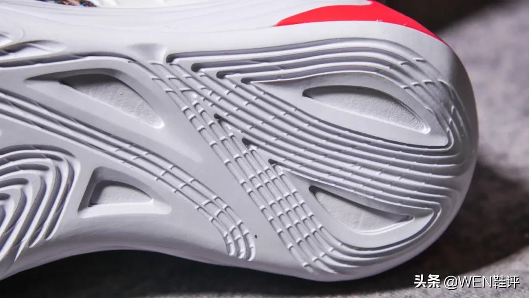 在外侧有一块面积巨大的TPU,包覆住了整个后跟,同时延伸到了鞋面的位置,可以为整双鞋提供不俗的支撑性。