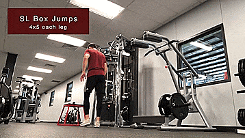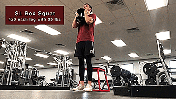 SL箱式深蹲:每条腿4*6 负重35磅