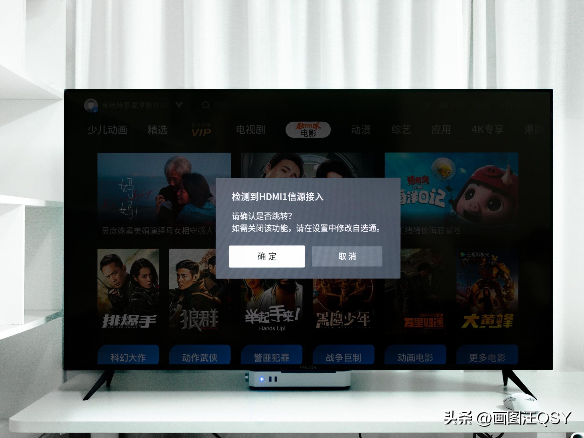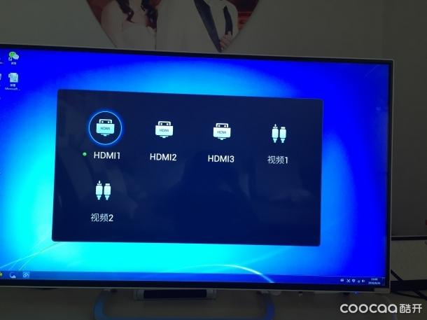 2、 连接电源线高清线,开电脑主机,开电视,都启动以后按下机顶盒选项选择信号源,我选择的HIMI1。酷开作为显示器鼠标什么没有任何延迟,使用起来也很流畅,不存在卡顿的现象。